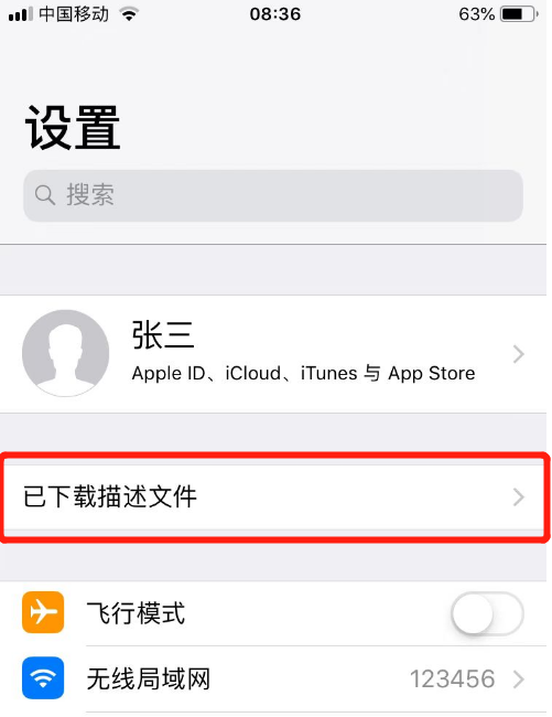 根据提示,回到手机桌面,点击【设置】找到已下载描述文件