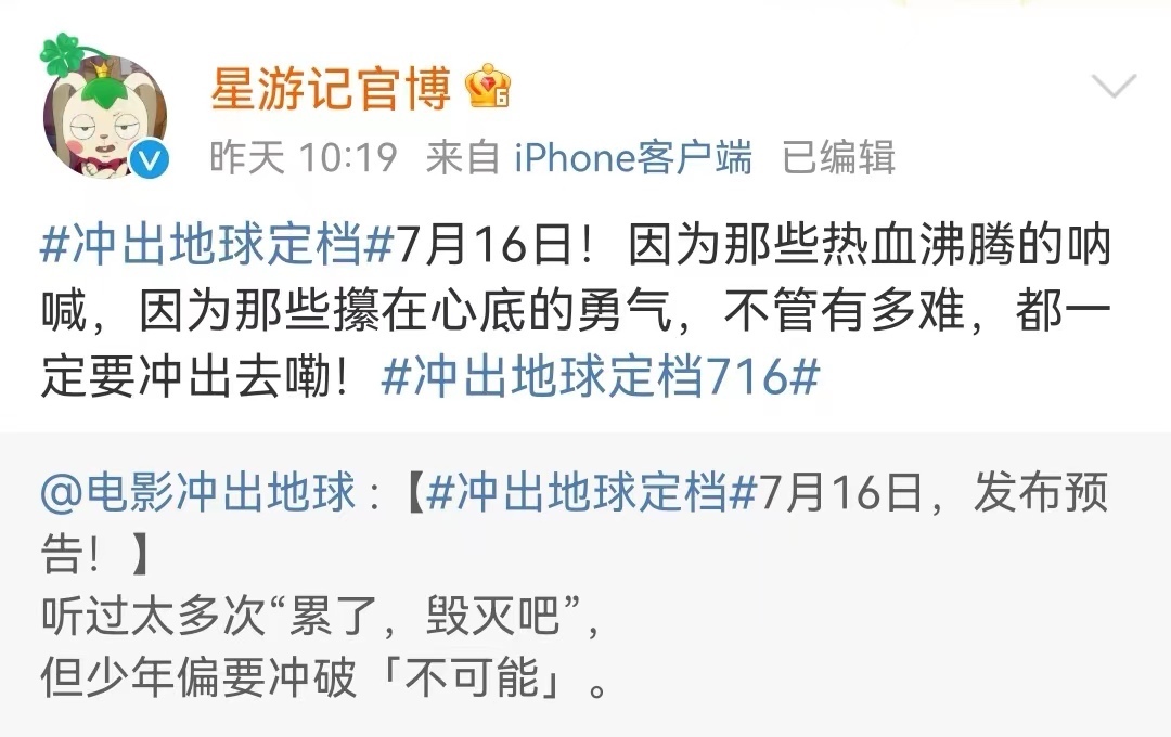 电影资讯《星游记》电影冲出地球官宣定档,六年磨一剑,网友却都不买账